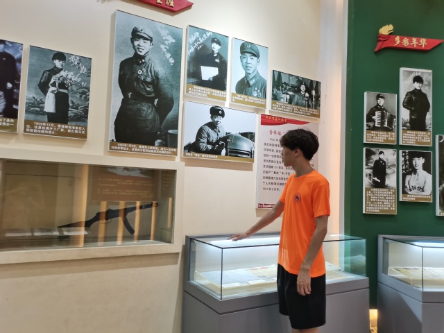 大别山革命红色文化博物馆是小镇上的一处红色基地,整个场馆虽然不大,但陈列了很多抗战时期的珍贵纪念品和小镇居民捐赠的老物件,其中就有当时家家都挂着的毛主席画像、20世纪50年代的粮票、红军们穿过的草鞋和制服。不仅如此,大别山革命红色文化纪念馆记载了抗战时期固始县全域发生的重大事件,以及詹谷堂烈士和蒋光慈烈士等英雄人物的事迹。行走在场馆里,王井蒙亲身感受到了一股时代的气息,看着这些饱含历史的老物件,仿佛被他们带回当时那个激昂的年代,亲身经历属于他们的故事。