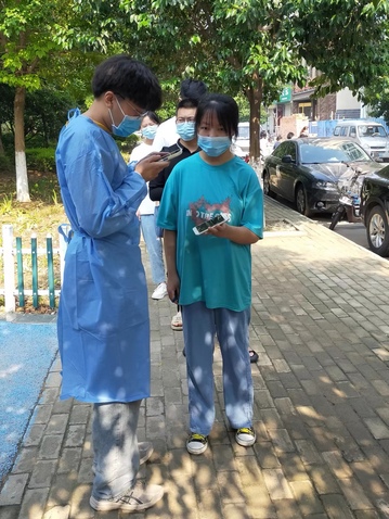 7月1日至10日,实践队员宋昂在家乡河南省商丘市加入了当地社区的疫情防控志愿服务队,开展日常防疫工作。疫情就是命令,防控就是责任,在全员核酸期间,宋昂提前半小时到场为居民们扫码,做核酸检测登记;在日常值班期间,他为外省返乡的居民做统计汇报,进行日常核酸检测扫码工作。作为一名青年志愿者,宋昂坚持以切身行动为家乡疫情做贡献,在实践中学会与人沟通、关爱他人,也更深刻地领会到生命的意义,担负时代的微光,扛起自己的使命。