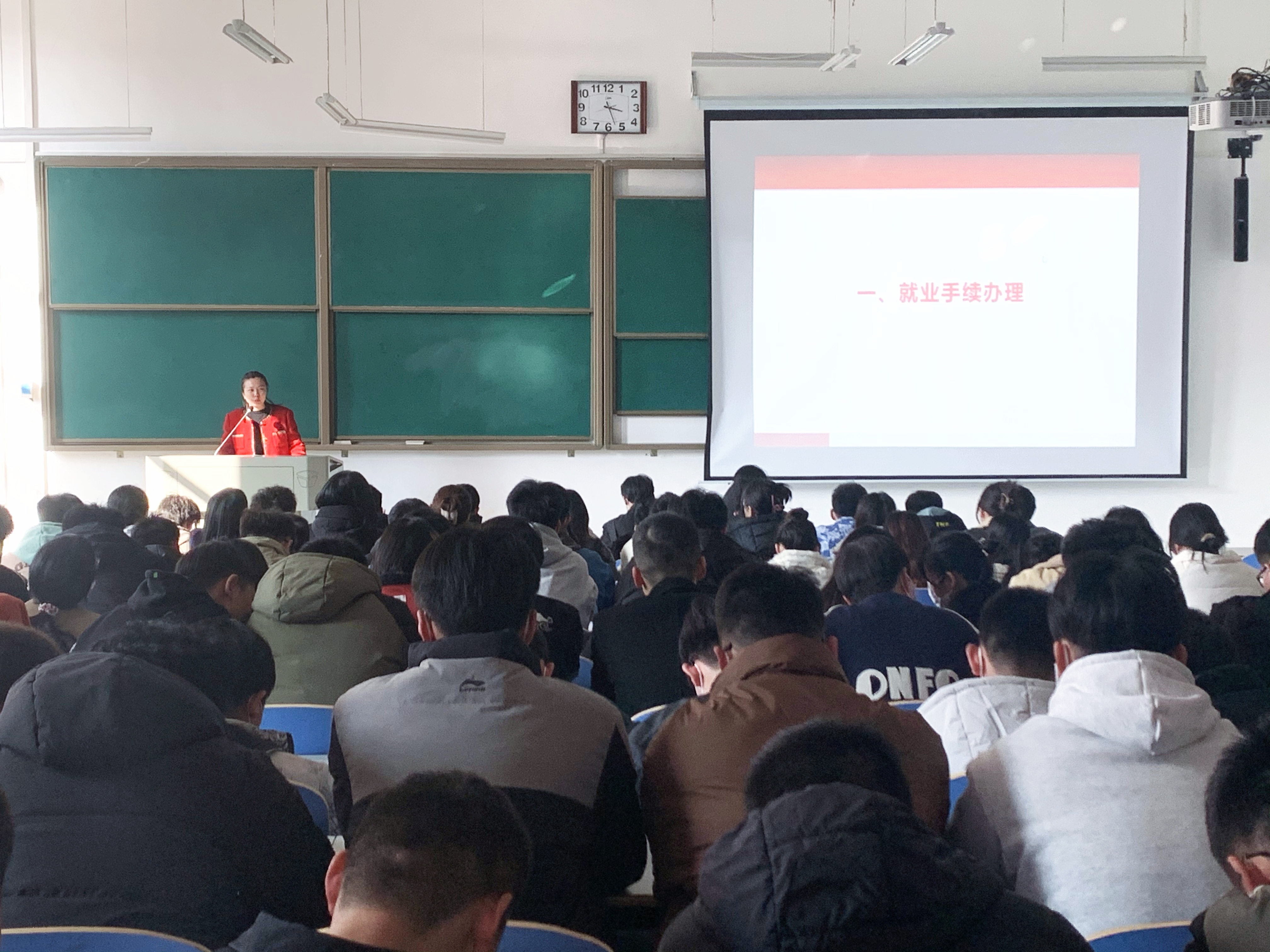 会上,彭东来副书记首先为大家分析了今年的就业环境和形势,指出毕业生数量逐年递增,就业形势依然严峻,希望大家一是在客观全面评估自身能力和兴趣的前提下,找工作不要一味求稳,更加注重能力的提升和成长;二是要抓住春季招聘的黄金期,积极准备、主动联系,通过大型招聘会、校园招聘会、专场招聘会、抓住机遇找到适合自己的岗位;三是审时度势,顺应变化,调整心态,快速进入升学复试、就业求职状态。接着,张怡老师从往届毕业生就业企业、就业地区、行业分布等方面向同学们介绍了学院往届毕业生的就业情况,详细讲解了本年度就业协议签署、学校最新就业政策和档案转递的安排。最后,毕业班辅导员寇老师提醒同学们要提前做好毕业前的相关准备,并勉励大家要择世所需、择己所爱、择己所长,用拼搏把梦想描绘成现实,成为更好的自己。