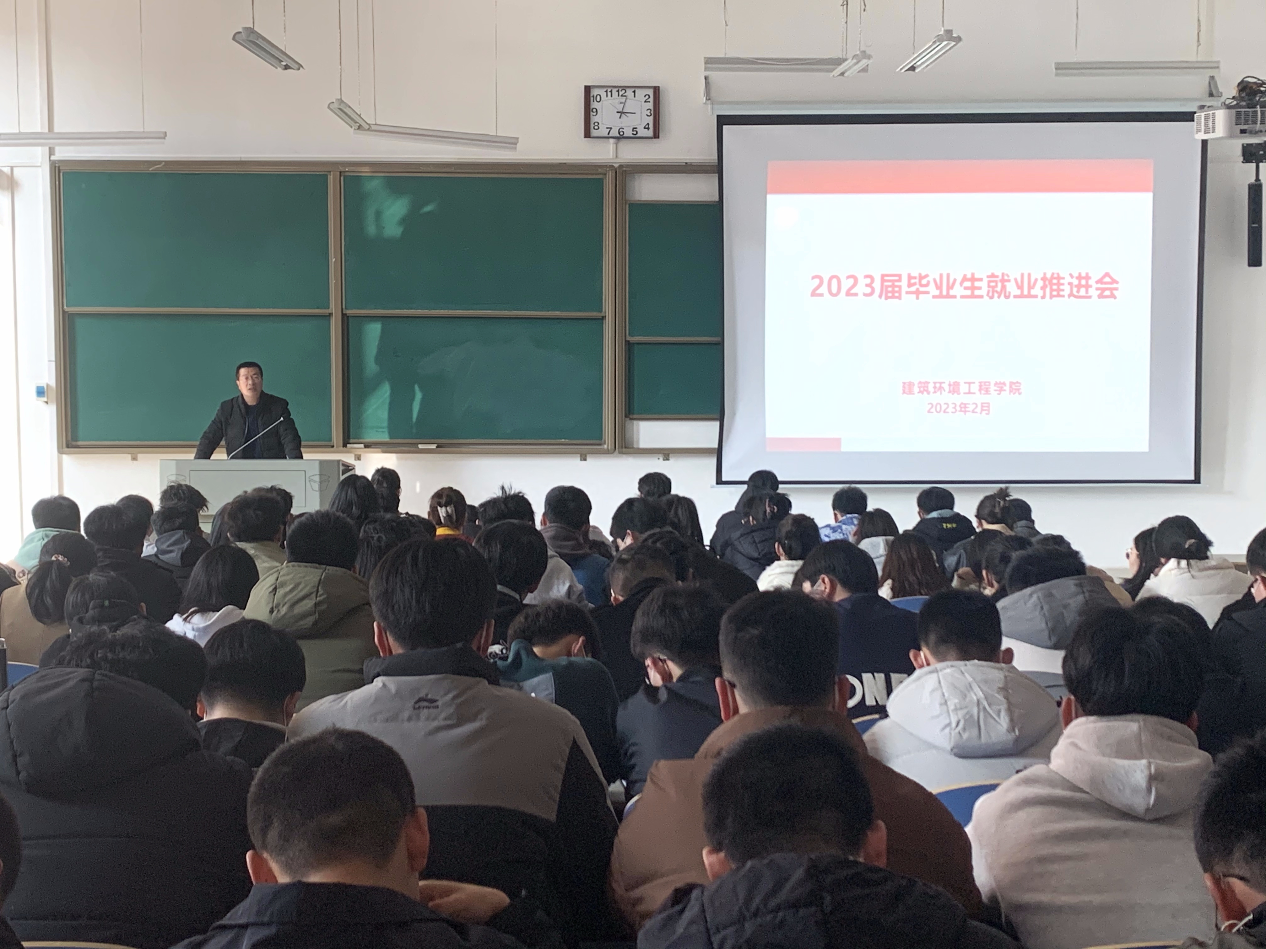 为推动2023届毕业生实现高质量充分就业。2月27日,里番漫画 在工程楼108教室召开2023届毕业生就业工作推进会。学院党委副书记彭东来、毕业班辅导员寇誉元、学院就业专职教师张怡和2023届全体毕业生参加会议。