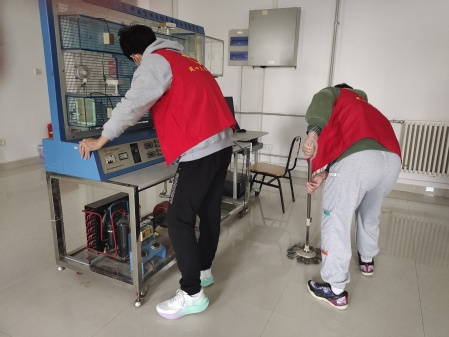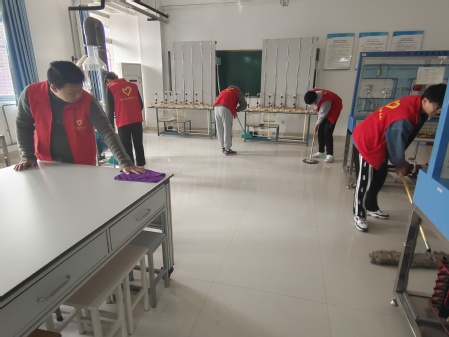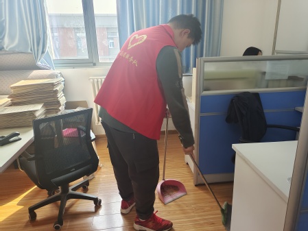 下午两点半,志愿者们有序走入学院实验室、会议室、办公场所,分工明确、迅速行动,按照各小组的任务分区开始了打扫。志愿者们热情高涨,干劲十足,打扫时毫不马虎,不放过任何一个角落。他们配合默契、互帮互助,有的手持扫把、簸箕,打扫地面上的垃圾与卫生死角;有的手持抹布、水桶,擦拭桌面上的灰尘;有的则负责摆放、整理书籍、实验器材。经过志愿者们一个多小时的努力,学院办公和实验场所被打扫得干干净净,环境焕然一新。