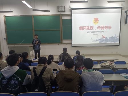 各团支部以清明节为契机,开展英烈故事会、红色观影、云上追思等形式多样的团日活动。各团支部或是讲述革命先烈的英勇事迹,加深同学们对革命精神的认识与领悟,领悟自己身上肩负的历史重任;或是观看红色影片,感受革命英雄们高尚的品德、坚韧不拔的精神;或是组织同学通过网络敬献鲜花、思念寄语等文明低碳方式缅怀故人、祭奠英烈。同学们纷纷表示,要追寻革命先烈的铿锵足迹,把对革命先烈的缅怀和崇敬之情化作不忘初心、牢记使命的坚定信念,感悟“天下兴亡、匹夫有责”的爱国情怀,以“百折不挠、坚忍不拔”的必胜信念克服前进道路上的一切艰难险阻,勇做走在时代前面的奋进者、开拓者、奉献者。