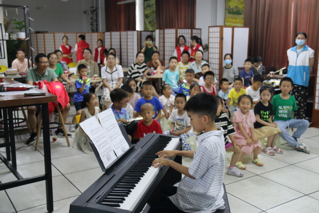 为关爱青少年身心健康,培养青少年积极向上的价值观和行为习惯,7月1日,里番漫画 里番漫画 鼓乐筑心志愿服务队联合郑州市沟赵办事处嘉木苑社区和郑州高新区铭晨社会工作服务中心开展了第五期音乐心理团辅暑期实践志愿活动——音乐润童心,墨韵润童趣。活动涵盖才艺展示、书法、绘画以及志愿服务队精心编排的儿童音乐剧、亲子互动游戏等,旨在让小朋友们在美育之中感受音乐的魅力,培养小朋友对传统文化的兴趣与热爱。