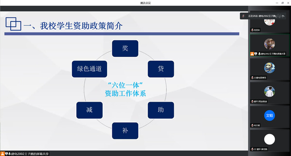 本次会议,陈思萌老师依据国家资助政策,从“奖、助、贷、困、补以及入学绿色通道”方面对学院2022级新生进行了详细说明。随后,为学生介绍了贷款政策的详细内容并多次强调诚信贷款、按时还款的重要性,树立诚信观念,增强法律意识。最后,彭书记在介绍相关政策之余,提醒新生谨防电信诈骗,远离校园贷,不超前消费,养成良好的金钱观、价值观,注意个人隐私的保护。