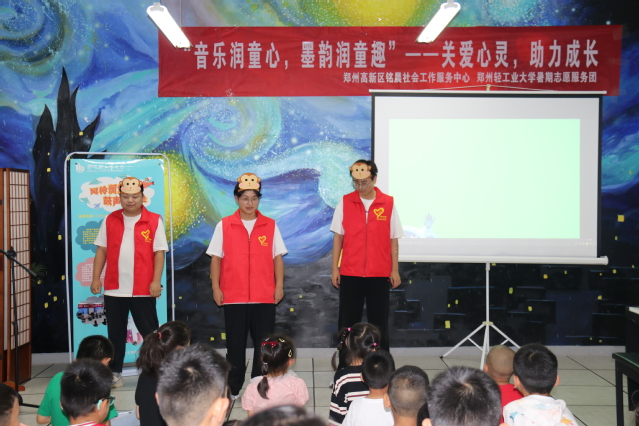 为关爱青少年身心健康,培养青少年积极向上的价值观和行为习惯,7月1日,里番漫画 里番漫画 鼓乐筑心志愿服务队联合郑州市沟赵办事处嘉木苑社区和郑州高新区铭晨社会工作服务中心开展了第五期音乐心理团辅暑期实践志愿活动——音乐润童心,墨韵润童趣。活动涵盖才艺展示、书法、绘画以及志愿服务队精心编排的儿童音乐剧、亲子互动游戏等,旨在让小朋友们在美育之中感受音乐的魅力,培养小朋友对传统文化的兴趣与热爱。