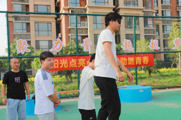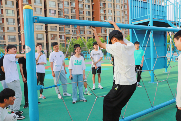 活动伊始,陈思萌老师逐一详细讲解了各训练项目的活动方案、活动目的和安全注意事项。同学们在指导下体验完成了“模拟电网”、“盲目障碍”、“礼让通行”、“携手并进”、“青少年智慧闯关静心思考”等多个项目。活动中,同学们相互熟悉、齐心协力、默契配合,努力攻克难关。项目完成后,大家积极展开讨论,并分享总结经验。整个氛围轻松欢快,同学们在拓展活动中缓解紧张和压力,增加了彼此之间的交流和信任,增强了团队协作能力,培养乐观积极的心态。