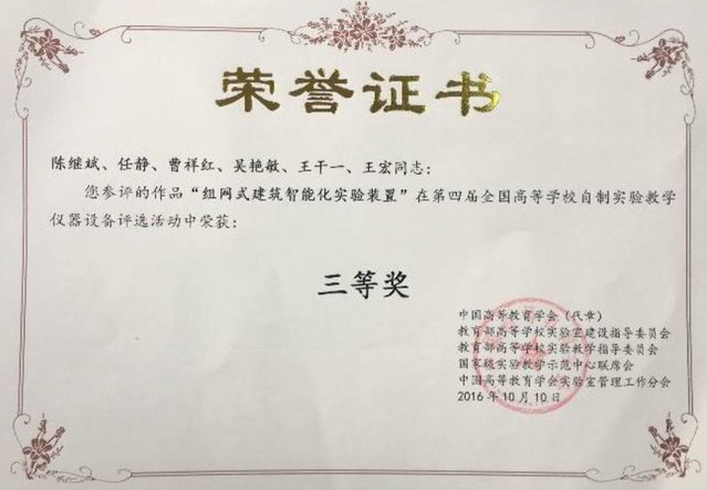 《建筑公共安全技术》课程进行实验教学的实验设备为本校师生自主研发的“组网式建筑智能化实验装置”,从建筑电气与智能化专业第一届学生开始师生共同研制该实验装置,着重学生的应用能力和实践创新能力培养,是一套建筑智能化领域的应用研究与应用创新的专业教学综合实验装置。不仅满足课程实验教学基本需求,还可以为师生提供基本科研平台,帮助教师了解行业的工程特点,是新进青年教师的工程实践基地。