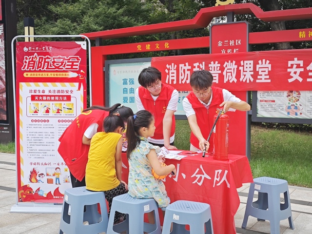 在金兰社区,志愿者们开展了消防安全知识问卷调查活动,问卷内容涵盖了生活中常见的用电安全隐患、灭火器的正确使用、火灾逃生方法等多个方面。小朋友们自行填写问卷后,志愿者们针对填写过程中的错误及时予以纠正,并对孩子们填写调查问卷时提出的其他问题进行了耐心细致地解答,消除了小朋友眼中的消防安全知识误区,科普了正确的消防安全知识。