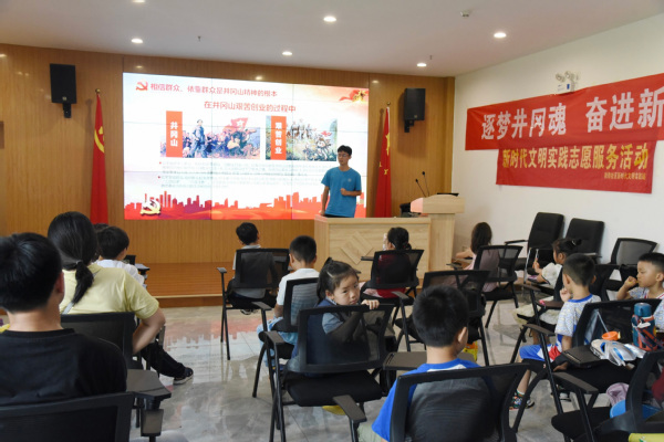 以星火之名点燃青春之光,彰显青春力量。“烽火传心”志愿服务队深入社区,通过主题宣讲、红色观影、知识竞答、故事分享等多种形式,变“固定讲台”为“流动课堂”,讲解井冈山精神,把宣讲内容从“高大上”变得“接地气”,将“大道理”转化为“小故事”,真正让广大青少年深刻感悟井冈山精神,在心中永远铭记英雄的爱国事迹,弘扬传承英雄的崇高精神,引导青少年从小胸怀祖国,热爱家乡,努力学习科学知识,成长为有理想、有本领、有担当的新时代好少年。志愿者们也在宣讲实践中积累知识、传递声音、增长才干。