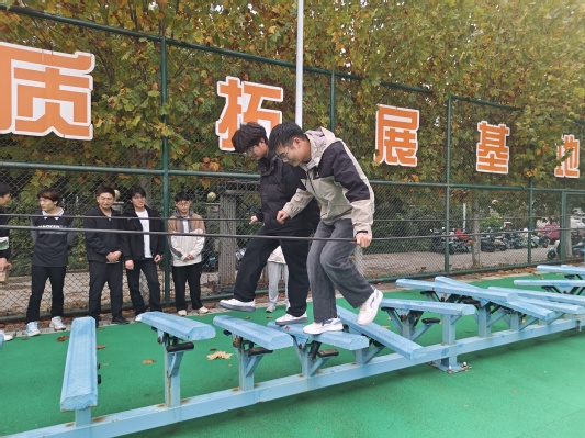 活动开始,陈思萌带领同学们参观了室外素质拓展基地,介绍了相关的基地使用器材和项目内容。此次活动包括盲目障碍、礼让通行、携手并进、梅花桩四个项目。活动中,同学们通过沟通协作,不断尝试,互相支持、互相鼓励,共同克服了各种困难和挑战。在这个过程中,他们不仅提高了自己的心理素质,还学会了如何与他人建立良好的人际关系,增强了团队合作意识和集体荣誉感。活动结束后,同学们表示通过思考和同学一起解决问题,感受到了满满的成就感,并主动申请体验了素质拓展基地里其他活动项目。至此,本次室外素质拓展活动取得了圆满的成功。