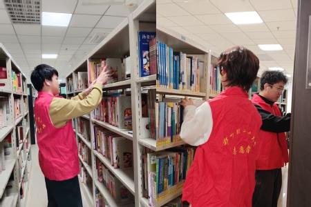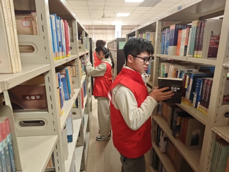 下午两点半,志愿者们身着统一服装走进图书馆,向图书馆管理员学习了图书的整理方法以及操作规范,迅速进入工作状态,到达各自的工作位置。他们分工明确,有的负责将归还的书籍分类归位,有的仔细擦拭书架上的灰尘,有的认真检查书籍的摆放顺序。整个志愿服务过程中,志愿者们轻手轻脚、轻拿轻放,尽量避免影响到图书馆内认真阅读、努力学习的同学们,保持着图书馆内良好的阅览氛围。经过志愿者们的努力,图书馆内更加干净整洁,桌椅摆放整齐,室内环境良好。