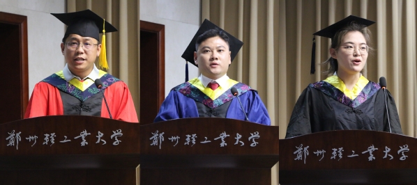 建筑电气与智能化专业翟昊婷、控制工程专业翟浩楠分别代表本科毕业生、研究生毕业生发言。他们回顾了在轻大拼搏奋进的学习成长经历,表达了对母校、对学院的感恩之心和对老师、对同学的万般不舍。安全工程专业系主任、教师代表秦恒洁发言,他深情寄语同学们保持终身学习的热情和对生活的热爱,勇敢面对未来的挑战,祝愿大家前程似锦,未来可期。