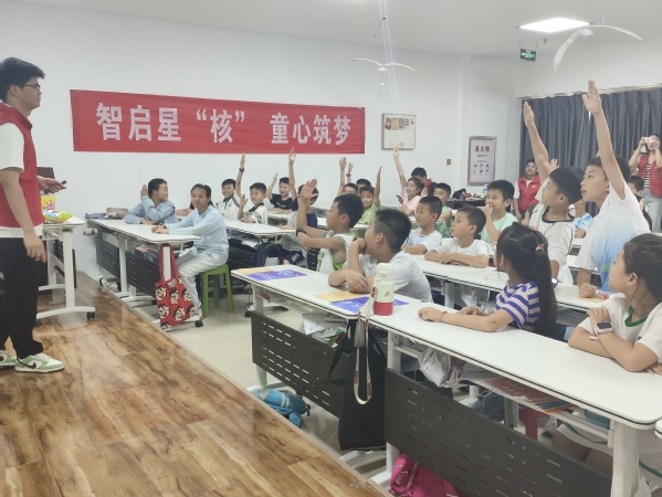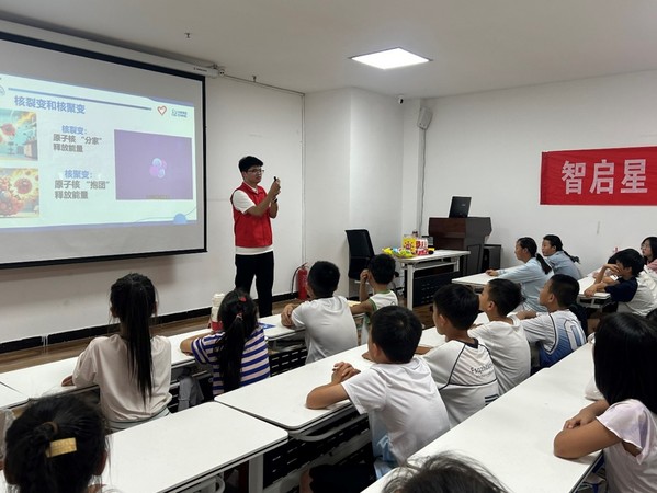 除了精神引领,本次宣讲活动还注重科技普及。在紫锦社区,宣讲成员通过动画视频与模型演示,向孩子们展示了核反应堆的基本工作原理,并以我国首座完全自主设计建造的秦山核电站为例,讲述中国在核能发展上从无到有、由弱变强的历程。孩子们在图像与实物的配合中,更直观地理解了这些“看不见的力量”如何在现实中发光发热,也在心中埋下了对科技事业的热爱与憧憬。