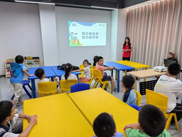 在金兰社区,宣讲团成员将“两弹一星”精神与当前的环保议题相结合,从全球气候变化谈起,引导孩子们了解“双碳”目标背后的意义。志愿者讲到,正是老一辈科学家敢于攻坚、勇于创新,我国才能在核科技领域实现从无到有的突破,而如今,清洁、安全的核能,正是实现碳达峰、碳中和的重要力量之一。通过动画演示和真实数据,孩子们第一次意识到,节约用电、绿色出行这样的小事,也和“两弹一星”留下的科技成果息息相关,它们不仅代表过去的荣耀,更在悄悄改变着我们每个人的未来。